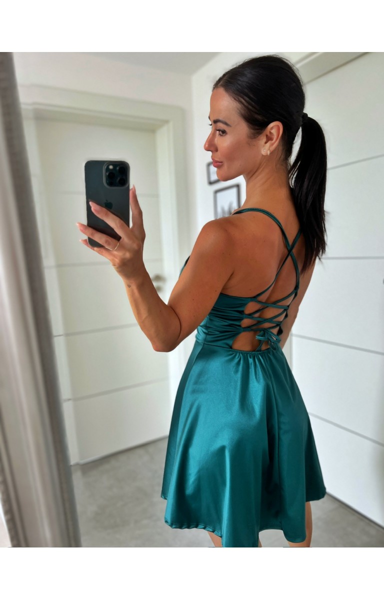 Nádherné šaty se vzhledem saténu,prsní část má výstuhu-lze vypárat,vzadu sexy šněrování velikost UNI S/M