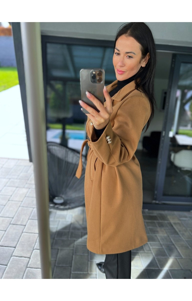Nádherné novinkové kabáty s podšívkou super na Podzim i Zimu,S/M UNI,pásek,kapsy,super délka,elegantní vzhled,zlaté dekorace.