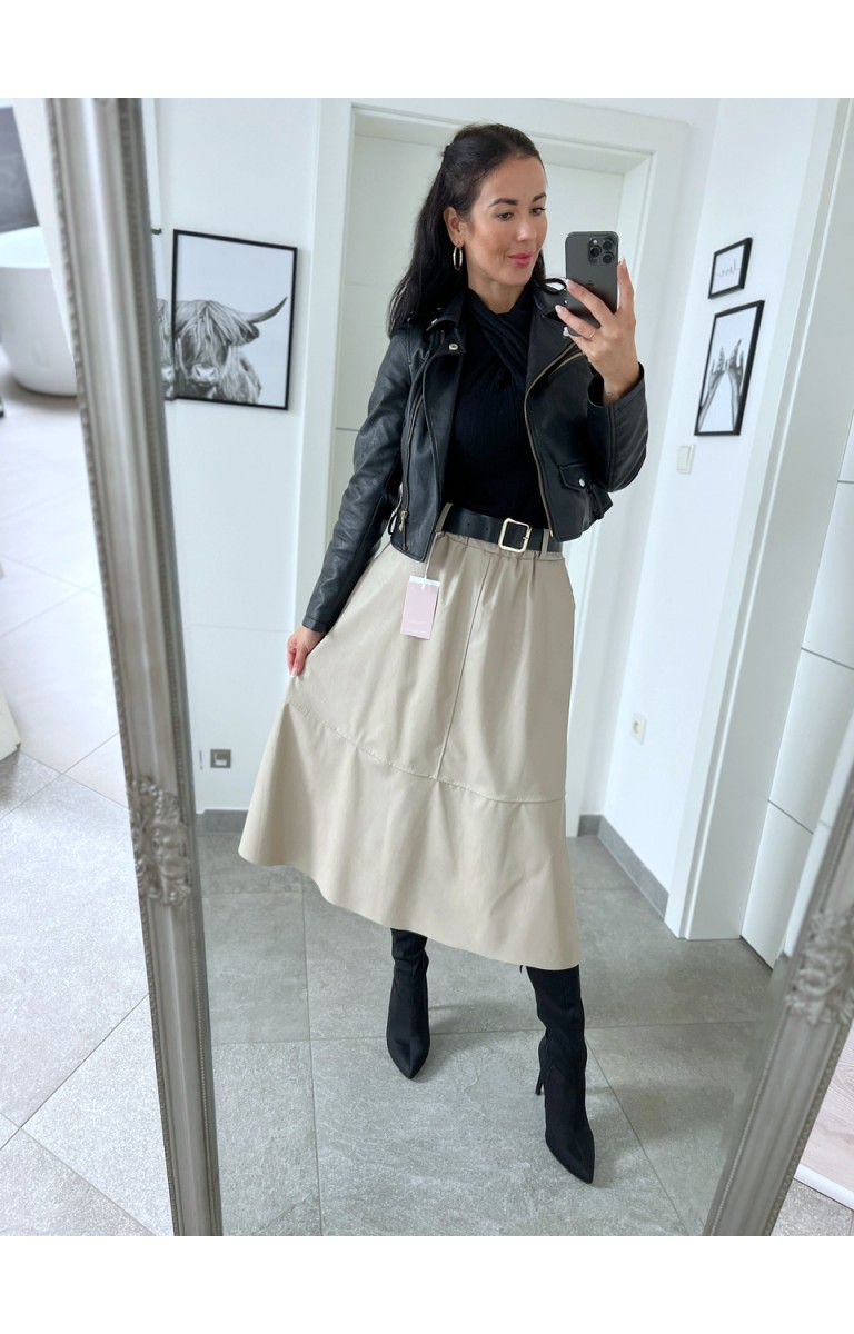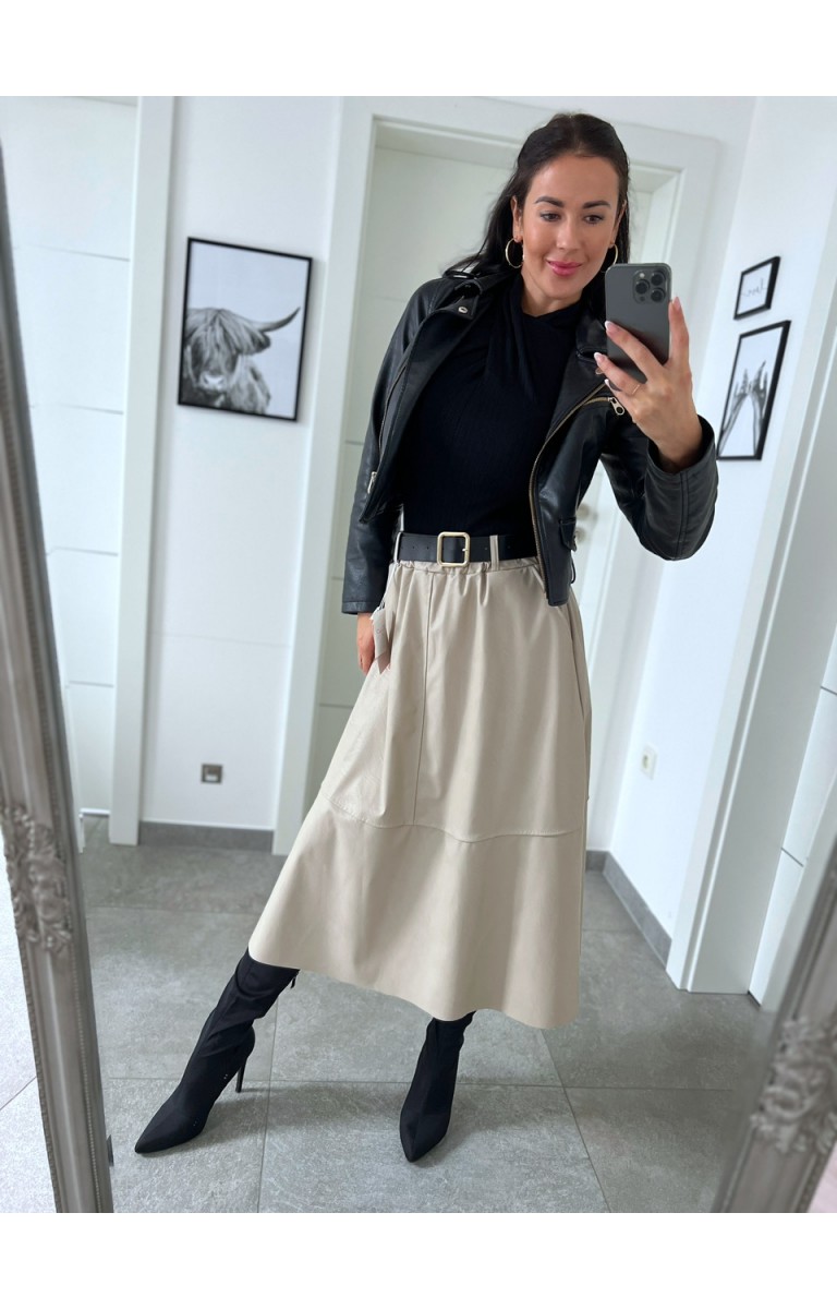Nádherné koženkové sukně UNI S/M v pase guma,pásek součástí,super midi délka