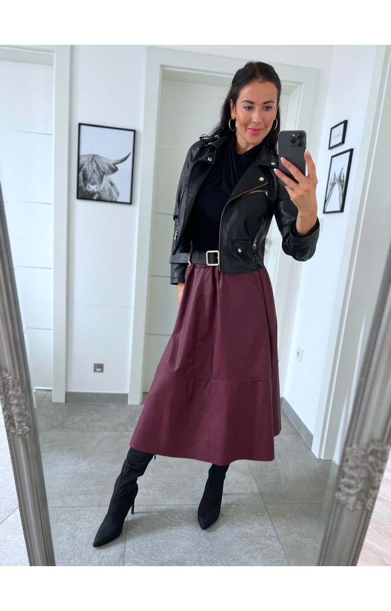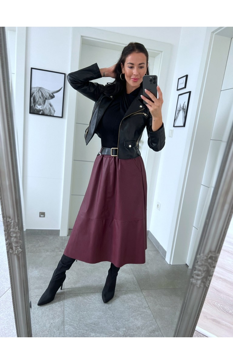 Nádherné koženkové sukně UNI S/M v pase guma,pásek součástí,super midi délka