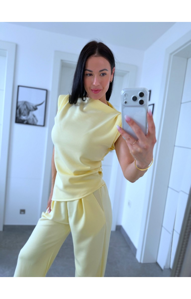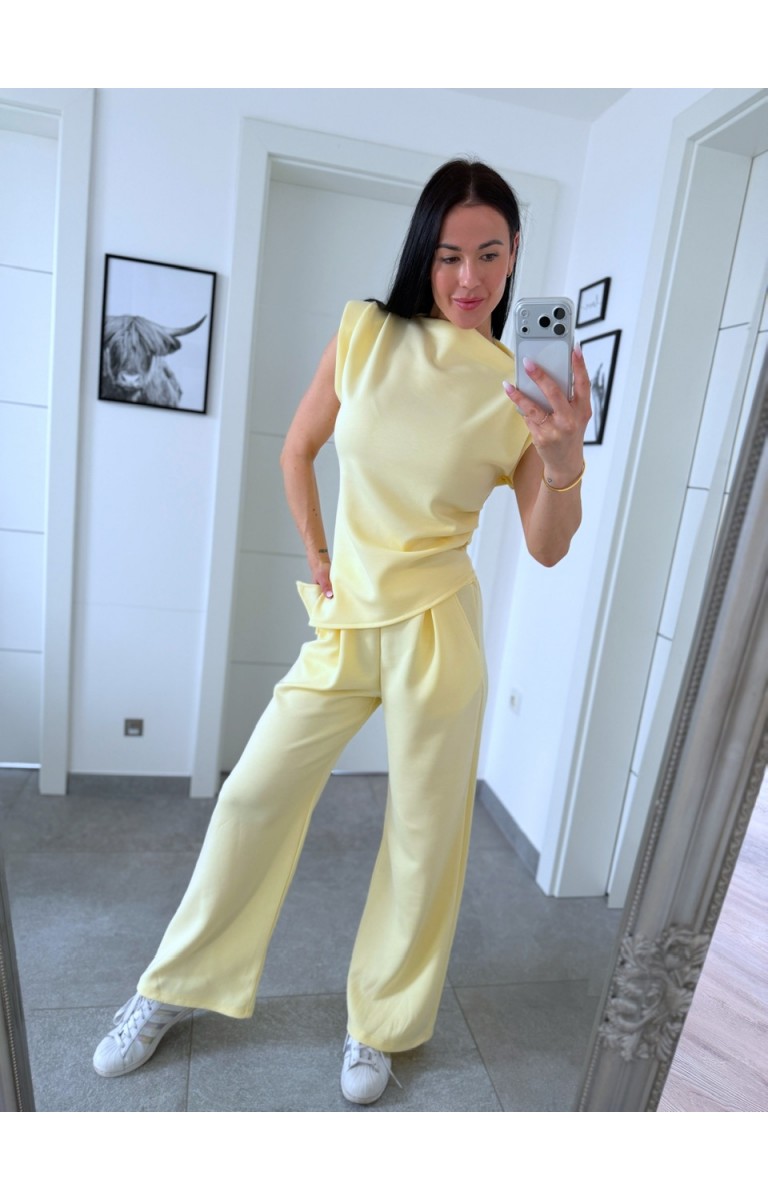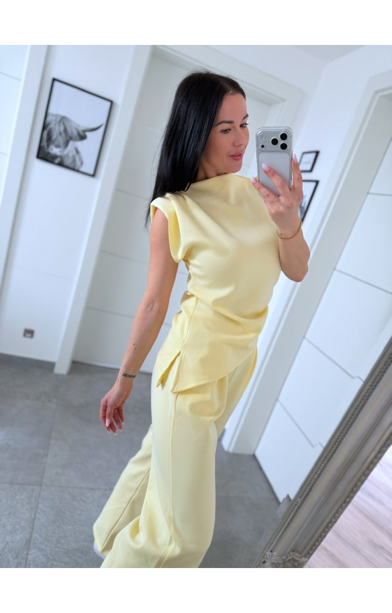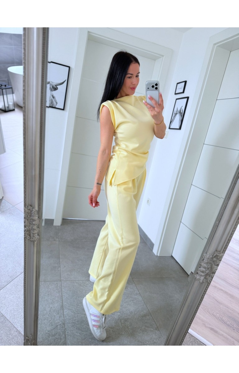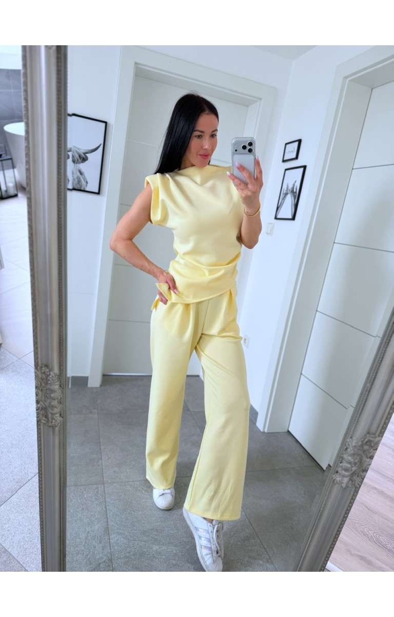 Nádherný máslový materiál set sedí na postavu S i M je poddajný foceno na postavě 170cm/S kalhoty jsou v pase na gumu
